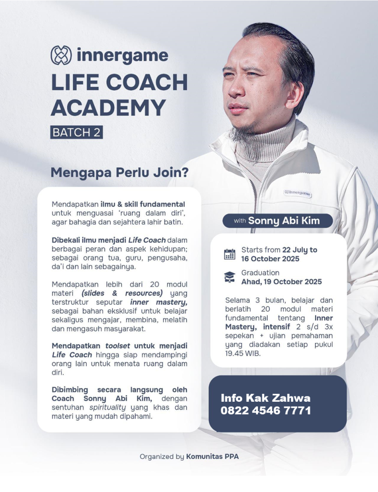 Jika Hatimu Ingin Tumbuh dan Menyembuhkan Daftarkan dirimu di INNER GAME LIFE COACH ACADEMY Batch 2 šŸŽ BONUS SPESIAL: āœ… Ebook ā€œBerdamai Dengan Diriā€ karya Coach Sonny Abi Kim